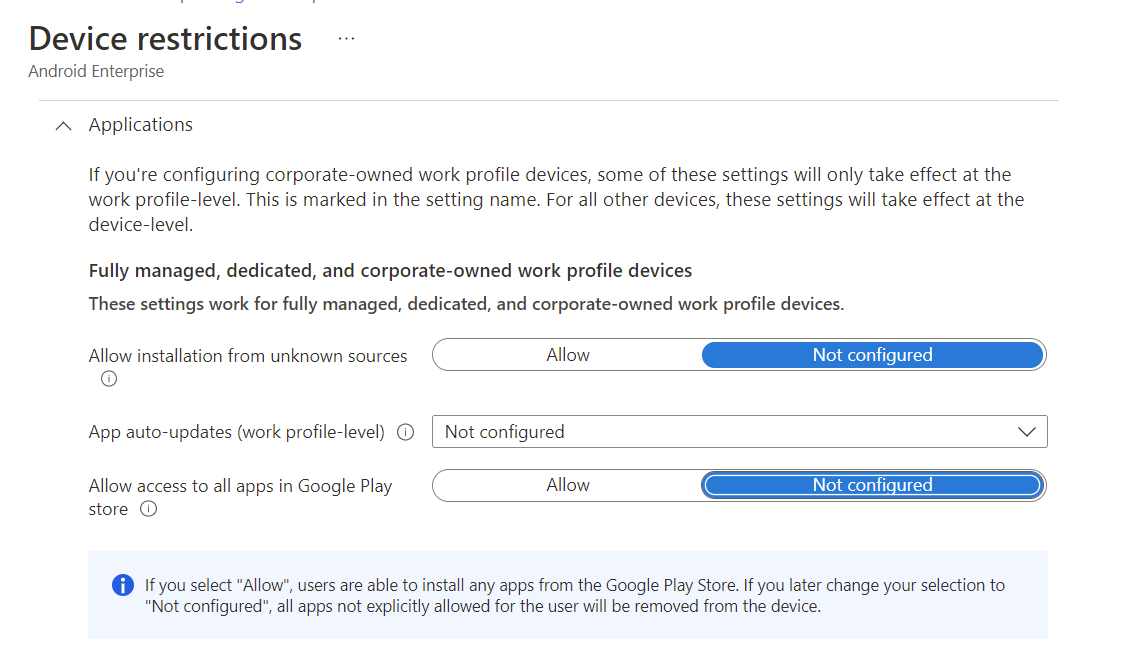 Following screenshot will prove my point in Intune that we can only take control over applications from Google Play store if;