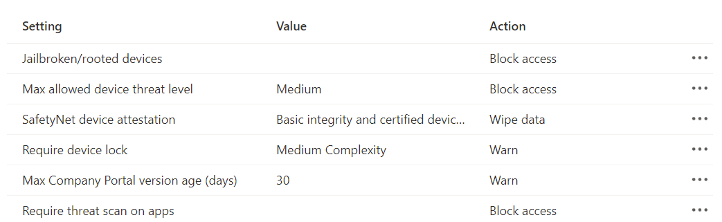 We can get a long way with conditional launch by using APP, but we should always at least use Microsoft's MDT with MDE to make sure we are aware of threat vulnerability management.