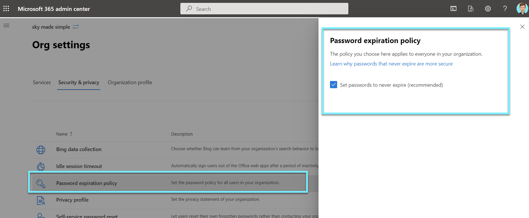 - Ensure that Office 365 passwords are not set to expire
