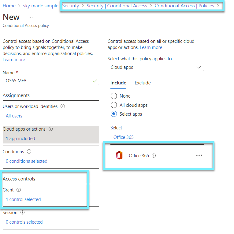 Conditional Access Policy for Office 365 (EXO, SP, SfB)
