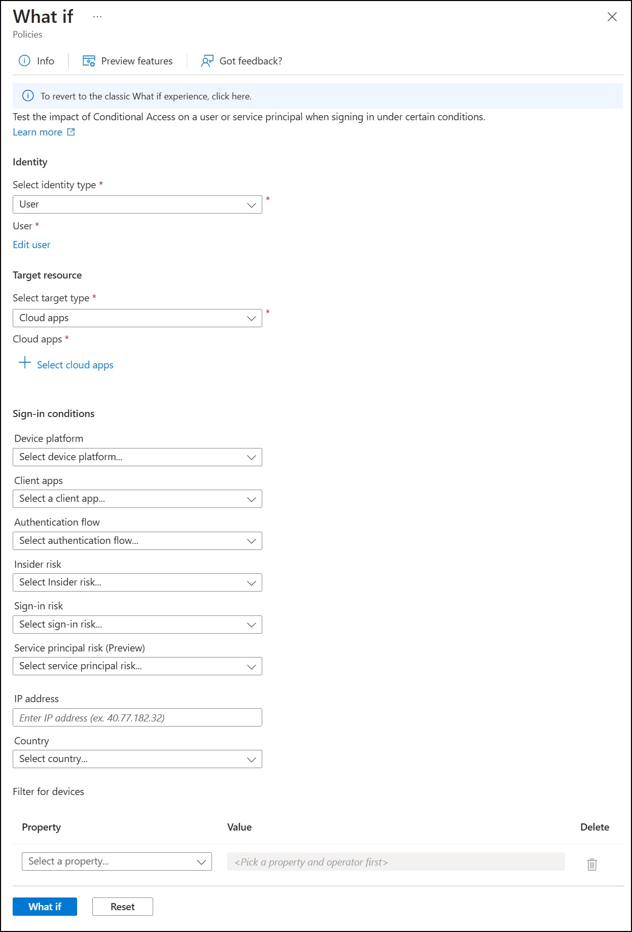 Conditional Access “What If” Simulation