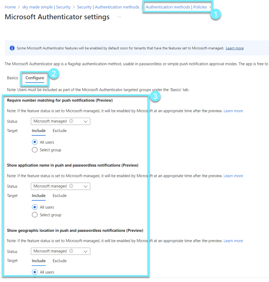 All three solutions are designed to provide users with the proper context for signing in. My suggestion is to use "require number matching" which will eliminate many MFA fatigue attacks.