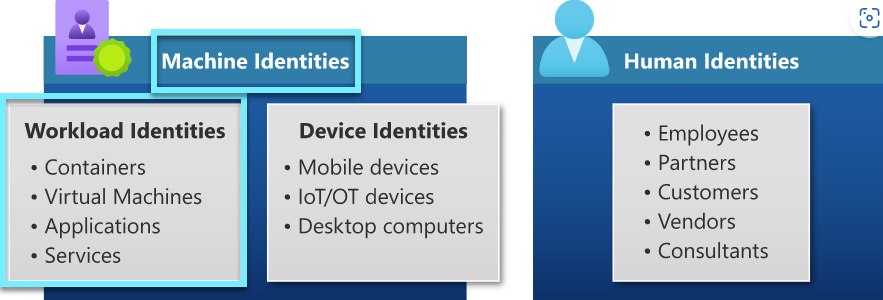 Workload identity is referred to as both an machine identity and a new service within Microsoft Entra. The service's goal is to ensure that we are managing our Workload identities or machine identities and to return control to us.