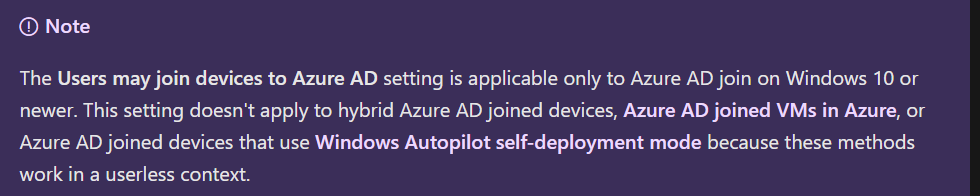 - Users may join devices to Azure AD (only if Azure AD Joined without Autopilot)