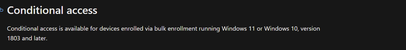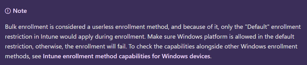 - Device Enrollment restriction (only default applies because we use bulk provisioning)