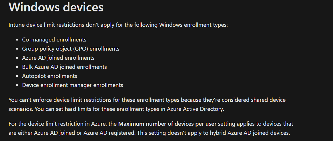 - Understand between Intune and Azure device limit restrictions | Microsoft Docs