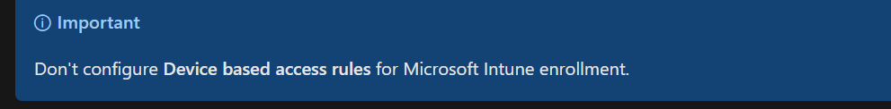 - Device Enrollment restriction (default applies, because of co-management and device context)